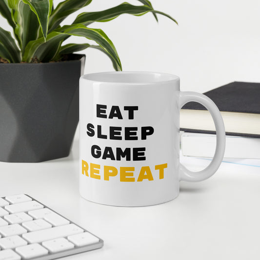H2K Eat Sleep Game Repeat White glossy mug