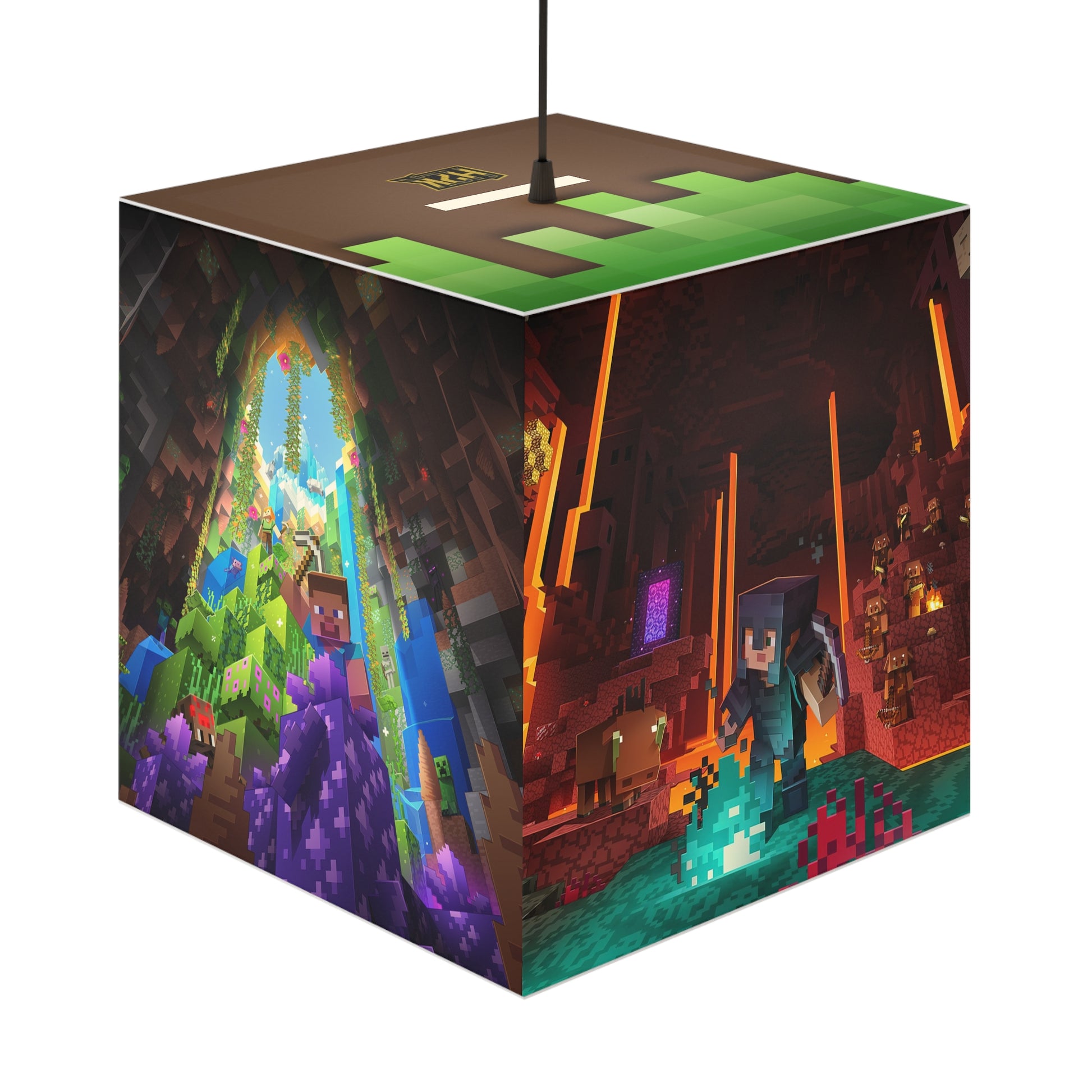 H2K Minecraft Light Cube Lamp, Gaming Decor, Unique Bedroom Light, Kids Room Decor, Video Game Gift, Vibrant Hanging Lamp